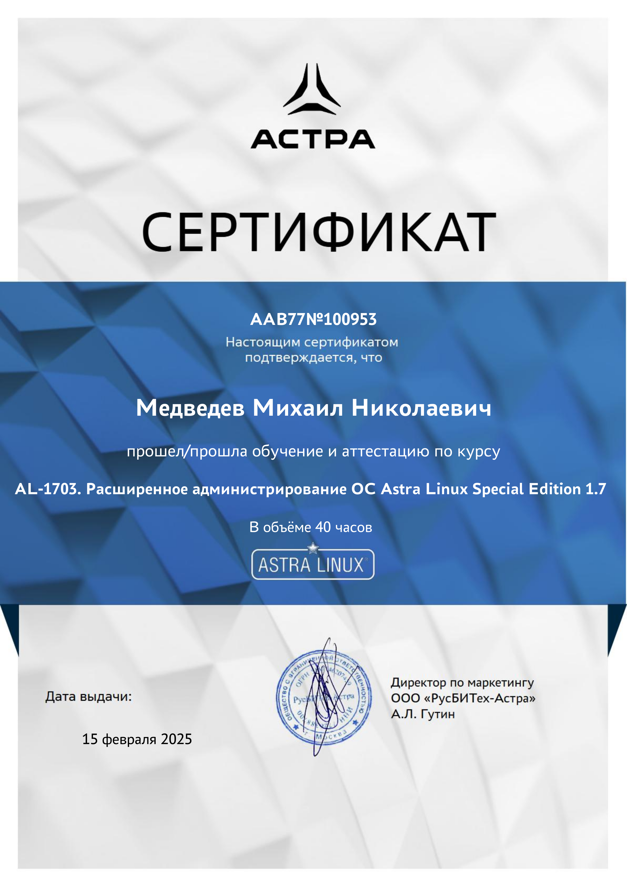 AL-1703. Расширенное администрирование ОС Astra Linux Special Edition 1.7 |